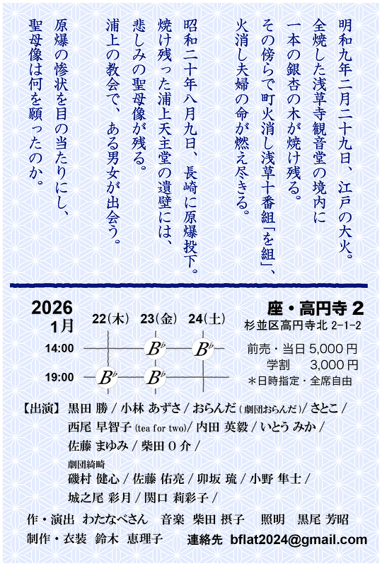 2026/01/22 (木)~2026/01/24 (土) 上演時間:約2時間10分(休憩なし)を予定 |